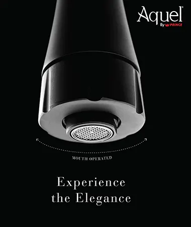 Aquel is a pioneer in designing and developing mouth-operated faucets that allow effortless control of water flow while maintaining a refined, aesthetic appeal. These minimalist faucets are available in table-mounted, wall-mounted, and ceiling-mounted options. Notably, the ceiling-mounted faucet is exclusively offered by Aquel, reinforcing its leadership in innovative faucet design.